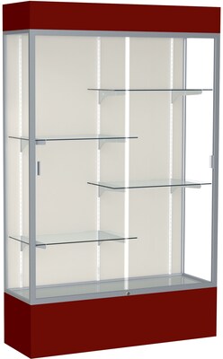 Waddell Spirit 48"W x 80"H x 16"D Lighted Floor Case, Plaque Back, Satin Finish, Maroon Base and Top (3174PB-SN-MN)