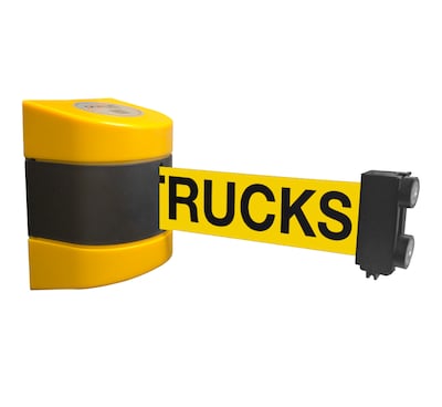 WallPro Magnetic 450 Wall-Mountable 30' Retractable Belt Barrier, DANGER FORKLIFT TRUCKS, Yellow/Black (WPM400Y-YBDFT15)