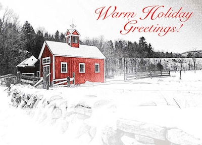 Warm Holiday Greetings Red Barn Holiday Greeting Cards, With A7 Envelopes, 7" x 5", 25 Cards per Set