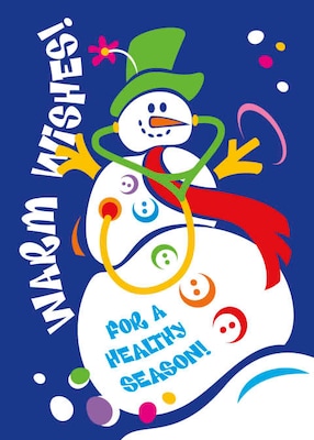 Warm Wishes For A Healthy Season Snowman Holiday Greeting Cards, With A7 Envelopes, 7" x 5", 25 Cards per Set