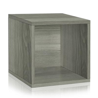 Way Basics 12.8"H x 13.4"W Eco Modular Stackable Storage Cube Modern Cubby Organizer, Gray Wood Grain (BS285340320-GY)