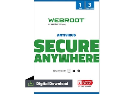 Webroot AntiVirus for 3 Users, Windows/Mac, Download (1000063020)