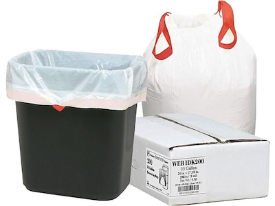 Make your cleaning easy with this 200-count box of Berry Global Draw 'N Tie white trash bags. With the 13-gallon capacity, they're perfect for holding mid-sized garbage loads and reduces bag replacement to save your time and money consumption.