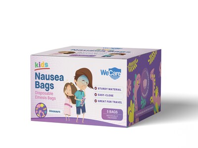 WeCare Dinosaurs Kids' Disposable Emesis Bag for Nausea and Motion Sickness, Multicolor (WC-EMES-D-5)