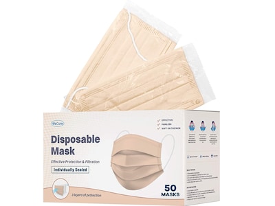 WeCare Disposable Face Mask, 3-Ply, Adult, Nude, 50/Box (WMN100023)
