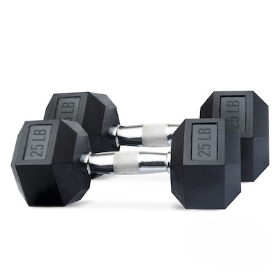 WeCare Fitness Rubber-Coated Chrome Handle 25 Lbs Dumbbells, 2/Set (WDN100014)