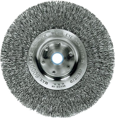 Trulock™ 6 in (OD), 3/4 in (W) Face Narrow-Face Crimped Wire Wheel Brush provides flexible brushing action and consistent performance for demanding light-duty cleaning and deburring applications.