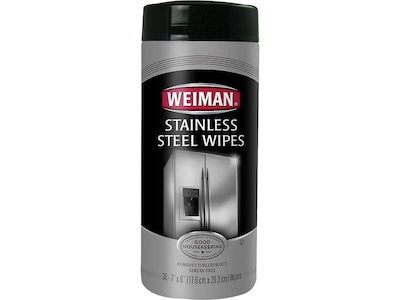 Give your appliances a new shine with these Weiman stainless steel wipes. The fresh-scented wipes leave a protective coating on your appliance's surface to repel dirt and dust, and they are designed to resist grease, watermarks, and fingerprints. These Weiman stainless steel wipes come in a canister of 30 wipes, which you can use for three to six months once you open the canister.