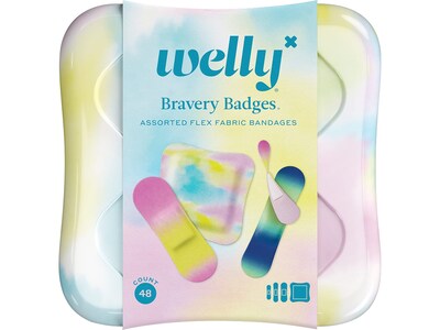 WELLY Bravery Badges 3" Fabric Assorted Adhesive Bandages, Assorted Colors, 48/Pack (44048)