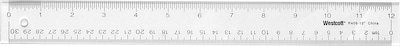 Westcott® acrylic ruler in clear color measures 12" long and features raised beveled edges to eliminate smearing.