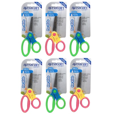 Westcott 5" Kids Stainless Steel Scissors, Blunt Tip, Assorted Colors, 6/Pack (ACM14596-6)