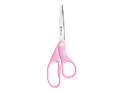 Westcott All Purpose Pink Ribbon 8" Stainless Steel Scissors, Pointed Tip, Pink (15387)