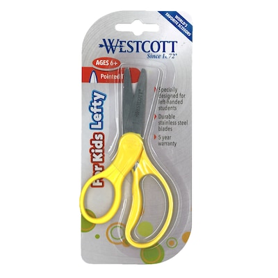 If you are looking for a pair of scissors for all sorts of cutting tasks, the Westcott Kid's Scissors will certainly come in handy. The blades are made of stainless steel, which ensures that they won't go dull anytime soon. Featuring a pointed tip, these 5 inch stainless steel multi-purpose scissors will help you achieve a more efficient output. Their bent handles are made of plastic, specifically for children and are designed for left-handed use.
