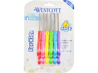 Westcott School 5" Stainless Steel Kid's Scissors, Blunt Tip, Assorted Colors, 6/Pack (16454)