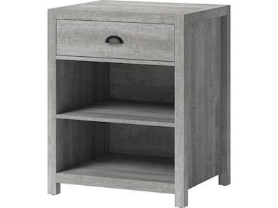 - Features one storage drawer and two shelves (one fixed and one adjustable)