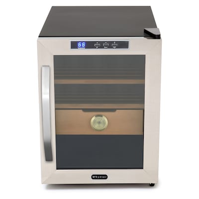 Whether you are a true cigar aficionado or a casual enthusiast, the Whynter CHC-120S Stainless Steel 250 count Cigar Cooler is an ideal cigar storage system for you. The two Spanish Cedar shelves and one spacious drawer are hand crafted of all Spanish Cedar wood. This helps maintain humidity, emits a light complementary aroma, and helps repel damaging insects. The Whynter CHC-120S is designed to help store and age cigars within the optimal humidity range 62% to 75%. This cigar cooler humidor contains a humidification tray (for use with your preferred solution/moisture beads - not included) and equipped with an elegant analog hygrometer which accurately monitors the level of humidity inside the unit. Maintaining a temperature controlled environment is also critical for discouraging the proliferation of any pests that may be present in the tobacco leaves. The thermoelectric cooling system used here minimizes the drying effect when cooling. The Whynter 250 Count Cigar Cooler is the perfect solution to storing, preserving, and aging cigars. It is also an attractive and elegant showcase for your prized collection.