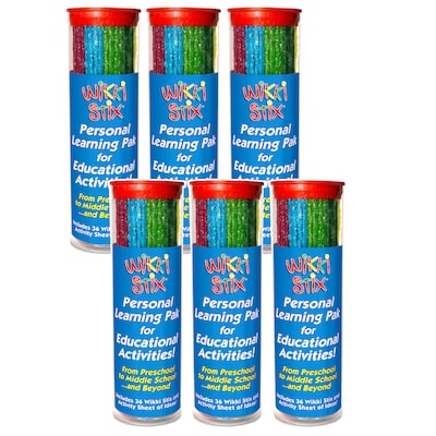 Each Personal Learning Pak includes 36 six-inch Wikki Stix in assorted colors, packaged in small tube for easy storage after use. Includes two-sided colorful flyer showing educational ideas across grades and disciplines. Designed for each students personal use! Stick to paper, posterboard, and most surfaces with fingertip pressure. Ideal for challenging STEM lessons. Sold as 2 packs for a total of 72 Wikki Stix.
