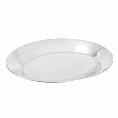 Perfect for serving steaks, chicken wings and more, the Winco APL-12 Aluminum Sizzling Platter 12" is a must-have in any commercial kitchen. This sizzler platter has a sleek, smooth surface that is easy to clean and will complement any setting. Built with a raised rim, this platter holds food inside to prevent spills while providing a secure grip. Thanks to its aluminum construction, this sizzling platter will withstand heavy duty use while maintaining its shape.