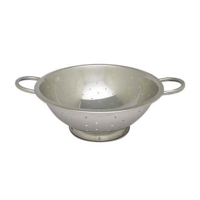 Quickly and easily rinse fresh produce and strain excess water from pasta using the Winco COD-5 Stainless Steel Colander 5 Qt. This colander has precision-pierced perforations to facilitate fast drainage and two sturdy handles for a secure grip. To reduce hand fatigue and improve sanitation, this colander features a footed base that allows free standing draining and keeps food off the countertop. Thanks to its high quality stainless steel construction, this colander will resist tarnishing and warping even after years use.