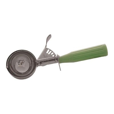 Traditionally used to scoop your favorite frozen dessert, the Winco ICD-12 Ice Cream Disher, Green Handle 3-1/4 oz. can also be used for portioning meatballs or molding cookie dough for baking. This disher comes with a thumb press mechanism to easily eject even the stickiest food and a colored handle for excellent balance and control. Featuring a smooth, stainless steel bowl, this NSF approved ice cream disher is easy to clean, rust resistant, and will endure heavy duty use.
