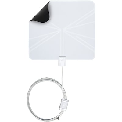 Winegard® FlatWave® amplified indoor antenna helps in high definition, dual-band VHF/UHF reception in multiple directions. With 18.5' coax cable, it offers an enhanced broadcast range of up to 50 miles. Embedded ultra-low noise digital amplifier with clear circuit technology offers crystal clear, Blu-ray quality true HD picture and powerful Dolby digital surround sound experience. Lightweight, compact design makes it suitable for use in smaller areas. This antenna measuring 13" x 12" is well suited for use with Apple TV, Boxee, Roku, Xbox, PlayStation, Wii as well as other streaming video and DVR devices. Includes 3' energy-efficient USB power cable with LED power indicator and 110 V adapter for added convenience.