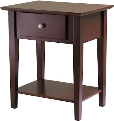 Winsome Shaker night stand features antique walnut finish for added elegance and has an easy access drawer for storing smaller accessories.Stand can be used as an accent table for versatility.