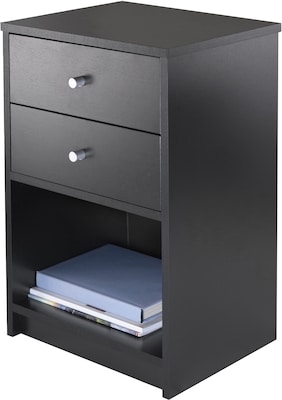 Winsome Ava accent table features 2 drawers with metal hardware for concealed storage of items and an open cabinet for display of items. Table in black finish is made of composite wood for longer durability.