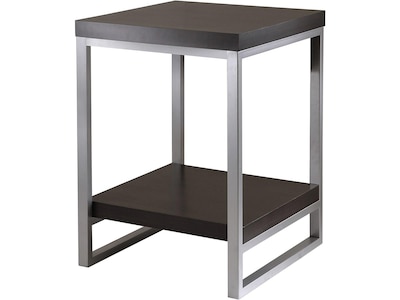 Complement your office in a contemporary design theme with this Winsome Jared end table/printer stand. The simple yet sturdy metal frame features a polished chrome finish for a modern look, and the espresso color adds a rich finishing touch to the shelf and tabletop. Use the bottom shelf for storing extra paper or office supplies, and place a lamp or printer on the tabletop. This Winsome Jared end table/printer stand pairs perfectly with a sofa or a row of guest chairs.