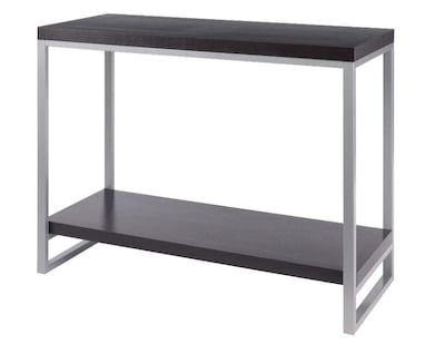 Bring modern style to your office with this Winsome Jared console table. An open design allows easy access to items placed on the bottom shelf, making this table ideal for storing books or cloth totes filled with office supplies. The rich espresso finish offers a striking color contrast to the silver-tone metal shelves for a contemporary look. This Winsome Jared console table features a rectangular shape that fits neatly behind a sofa or along a focal wall.