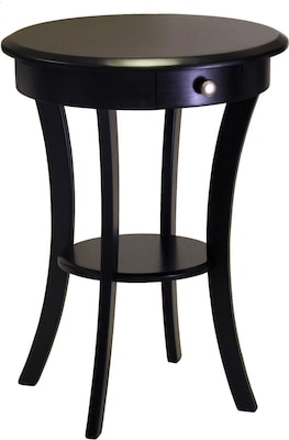 Winsome Sasha 20'' round accent table is smooth and constructed from durable solid wood.Table in black finish suits any style of room and comes with a drawer for storage.