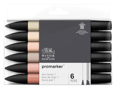 The Winsor & Newton (formerly Letraset) ProMarker is a dual nib marker. Each marker has a fine point on one end, and broad chisel on the other. The fast drying ink is an alcohol and dye based formulation for even color application with no streaking. The translucent colors are perfect for layering to achieve depth and opacity. Available in sets of 6 colors including: Neutral, Vibrant, Rich, and Skin tones.