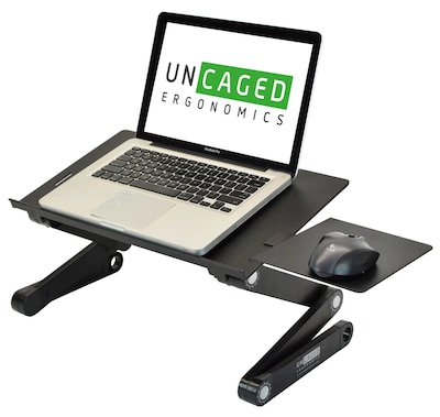 This ergonomic laptop stand adjusts in height and angle to optimize you posture, health, and comfort when using a laptop. Laptop cooling stand: aluminum panel dissipates heat to cool laptops. Ambidextrous mouse pad: connects to the right left side of the panel, tilts, and is easily removable. Versatile: works everywhere - in bed, on the couch, sitting or standing at a desk.