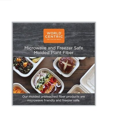 Soak proof, freezer safe, and contain no wax or plastic lining. Great for grocery stores, supermarkets, restaurants, cafes, delis, and food trucks with takeout entrees, burgers, sandwiches and more. 100% compostable in two to four months in a commercial composting facility. Gluten free. The tear drop shaped protuberances on the exterior of the clamshell containers are a trademark of World Centric