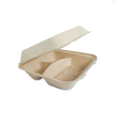 World Centric Fiber Hinged Container, 3-Compartment, Natural, 300/Carton (WORTOSCU9TLFP)