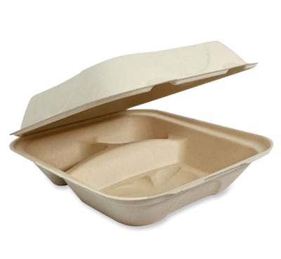Made from unbleached plant fiber, an annually renewable resource and good alternative to petroleum-based container