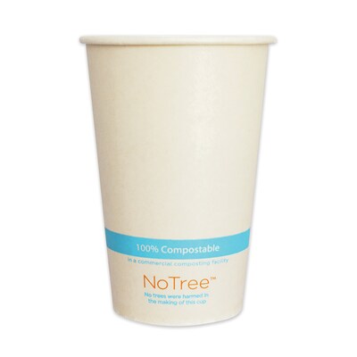 Made from rapidly renewable, unbleached bamboo paper. No trees are used to make NoTree™ cups. Bio-lining made from plants creates a moisture barrier. Disposable, freezer safe, and contain no wax or plastic lining. Great for all cold beverages, but can also hold liquids up to 220°F. 100% compostable in two to four months in a commercial composting facility. Not microwavable.