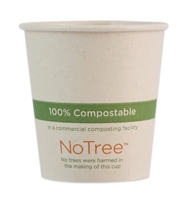 Made from rapidly renewable, unbleached sugarcane paper. No trees are used to make NoTree™ cups. Bio-lining made from plants creates a moisture barrier. Disposable, freezer safe, and contain no wax or plastic lining. Suitable for liquids up to 220°F. Great for warm beverages like coffee, tea, and hot cocoa. 100% compostable in two to four months in a commercial composting facility. Not microwavable.