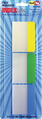 Write-On Self-Stick Index Tabs/Flags, 1 1/2 x 2, Blue, Green, Yellow, 30/Pack