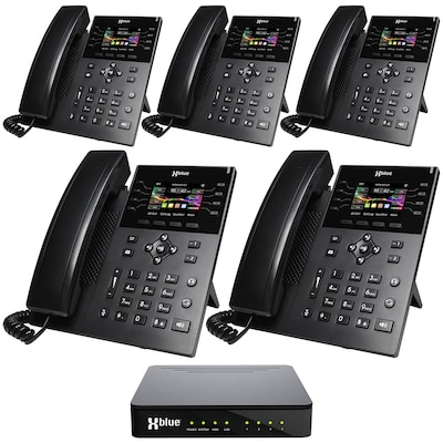 XBLUE QB Advanced QB1005 IP Phone System Bundle, Black, 5 Phone Bundle