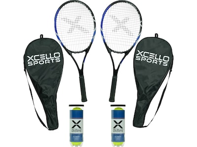 The Excello Global Products Xcello Sports tennis racket set comes with two rackets, six tennis balls, and two oxford carrying cases. Whether you're hitting the local park with a friend to show off your best serves or introducing teenagers to a fun new sport, this tennis racket set has everything you need to get active. The included tennis rackets are made of aluminum, which makes them lightweight and durable.