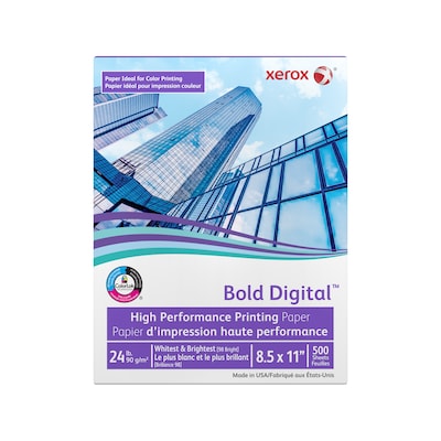 With its smooth surface and high brightness, Xerox® Bold Digital™ Printing Paper stands out and delivers results. This high performance uncoated paper has been engineered and optimized for digital color printing, resulting in crisp images, vivid colors, bold blacks and exceptional reproduction of photographic details. Designed to run in a variety of printers, it is available in a wide range of weights and sizes.