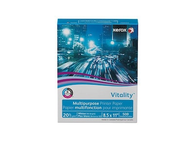 Receive faxes, make copies, or print documents with this Xerox Vitality multipurpose printer paper. ColorLok technology delivers rich, bold color to every printout, and the whiter white sheet lets text stand out for better readability. This 500-sheet ream of Xerox Vitality multipurpose printer paper comes with a 99.99 percent jam-free guarantee when used with high-speed digital printing equipment, so your pages come out crisp and neat.
