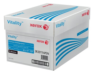 Xerox Vitality 8.5" x 11" Premium Multipurpose Paper, 24 lbs., 97 Brightness, 500 Sheets/Ream, 8 Reams/Carton (1001)
