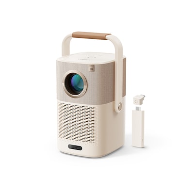 The Yaber T2 Plus is a versatile portable projector that offers an immersive entertainment experience. It features premium JBL sound and Dolby Audio for rich, cinematic audio. With 450 ANSI Lumens brightness and native 1080P Full HD resolution, it provides clear, vibrant visuals, even in bright environments. The Built-in-Battery lasts up to 2.5 hours, making it ideal for outdoor movie nights or travel. Its unique handle also works as a stand, allowing flexible projection placement. Plus, the included Google TV dongle gives you access to Netflix and over 7,000 apps, so you can enjoy endless streaming options.