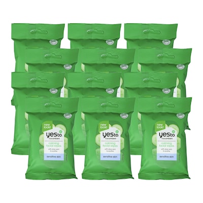 Yes To Cucumbers Soothing Hypoallergenic Facial Wipes Travel Pack, 8 Packs/Bag, 6 Bags/Carton