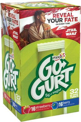 - A 32-Pack of Yoplait Go-Gurt EZ Open Tubes in 2 great flavors