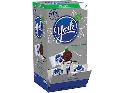 Display these treats on a countertop, front desk, or break room table to give everyone the refreshing taste of peppermint and dark chocolate. This box contains 175 individually wrapped York Peppermint Patties so every guest and employee can enjoy a soft, fresh treat.