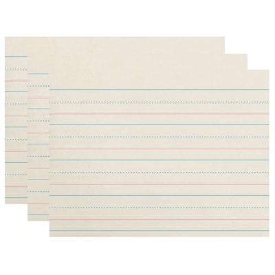 This paper is printed with a red baseline and dotted blue midline making it easy for students to find the headline quickly and easily. Printed both sides on clean White newsprint. Ruled 1-1/8" (long way), 9/16" dotted midline, 9/16" skip space. For Grade PreK-K. Recyclable. Measures 10.5" x 8". Each pack includes 500 sheets. Sold as 3 packs for a total of 1500 sheets.