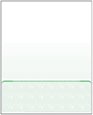 Zapco® Green security check on bottom measures 8.5" x 11", has 60 lbs offset paper stock and is sold as 500 per pack.