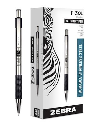Zebra F-301 Retractable Ballpoint Pens, Fine Point, 0.7mm, Black Ink, Dozen (ZEB27110)